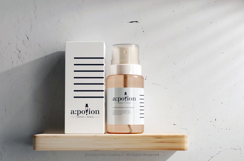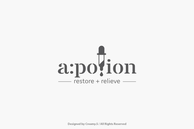 A. Potion branding concept – All the products of A. Potion is a mix use of different natural skincare materials. The Pipette illustrates the idea of a magic potion and the lines express the idea of step by step improvement after using the products. Designed by Creamy.S, All rights reserved