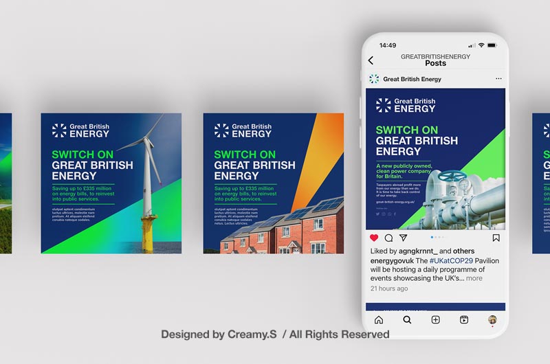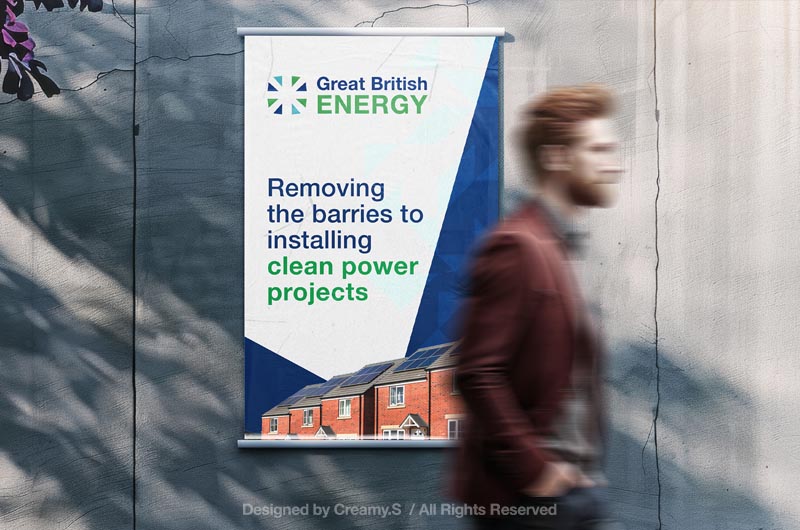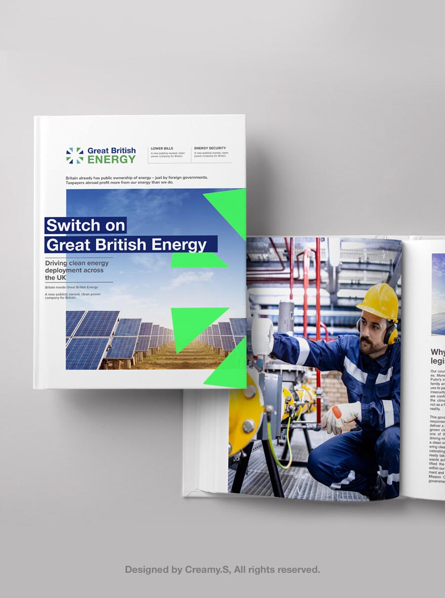 Great British Energy is committed to making the UK a clean energy superpower by speeding up deployment of mature and new technologies, as well as local energy projects.The brand is focused on the organisation’s ambition to make the UK a clean energy superpower. Therefore, when designing the brand, we’ve put the concepts of collaboration, British-ness and clean energy to the fore. Designed by Creamy.S, All rights reserved